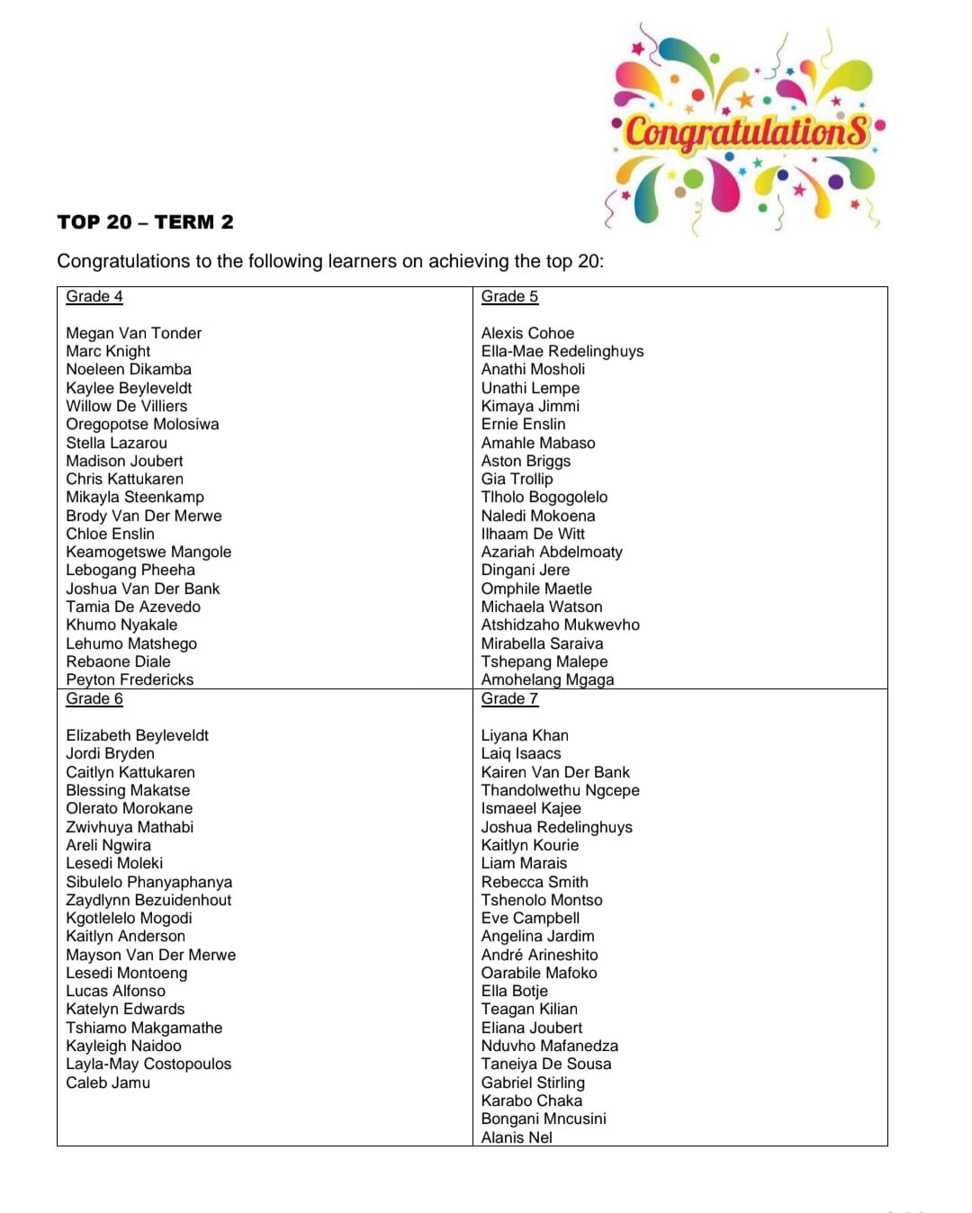 Learners are encouraged to pursue excellence in all aspects of their academic experience at the school, and have gone on to represent the school proudly in numerous local and national competitions. Spelling Bees, Speech and Drama competitions, Eistedfods, Conquesta, Math & Science Olympiads and Chess challenges appear to be high demand as the global restrictions are lifted.